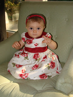 At what age do children become fearful? Mae has shown no fear of strangers, strange things, men with beards, anything. That was until today, when we went to visit Santa. We where at the mall with some extra time and the Santa line was empty, so I wheeled Mae back to meet Jolly Old St. Nick. Never have I seen her apprehensive, but something about the long white beard, tiny glasses and white cloth gloves must have pushed her over the edge. We didn't have hysterics, but we weren't happy. No pictures, but hopefully in a few weeks we'll try again (with reinforcements).