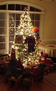 We'd been practicing for more than a month, and we are proud to say that Mae made it down the stairs Christmas morning without a problem! She was more than a little surprised to see the awesome tunnel system Santa left her and Ben at the bottom of the stairs, and then the block fort surrounding the tree! Everyone got such wonderful presents, from Santa, family and friends -- too many for us to list here. But we did snap a few pictures, and have video for anyone else interested!