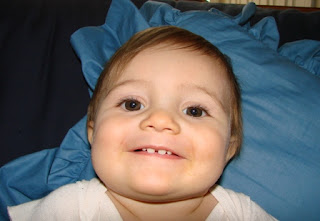 Mae is now eager to show anyone who gets their finger close enough her 2 new teeth. We tried to get a picture of the new teeth - located on the bottom - but we were afraid she might bite the camera.