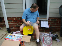 Pop-pop putting the tricycle together.