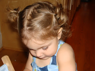 This was a creative attempt that lasted about as long as it took to take the picture, but really cute. I think maybe one more twist of the hairband and they will be harder to take out.