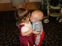 But Ben wasn't the only kid in the room for dinner. Mae and Connor were there to have a blast! Connor is the son of a Triangle curling couple that we are friends with, and somebody Mae just adores! She wanted to follow him everywhere he went! And he just wanted to hug her and tug at her curls.