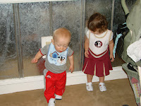 The bonspiel's theme was "back to college," so Mae is dressed in her FSU Cheerleading outfit for her big sister, and Connor is dressed in his Ohio State garb.