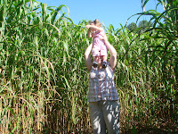 Despite being on our own, we had a great time! It was Ben's first corn maze (we took Mae to a different one last year) and both babies' first hay ride. Ben's favorite part seemed to be the hay ride, both he and Mae were fascinated by the tractor. Mae loved getting to walk among the corn stalks in the maze that were well over 7 feet high!We did get very lost, and then little Mae took off (yikes!). Still, a great time -- a big thanks to Miss Tammy and Mr. Raymond -- and we can't wait to go back WITH DADDY! New rule in our house, exciting things like a maze require one parent per child!