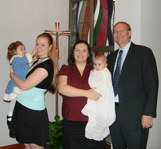 What a beautiful day! Today, Ben was baptized in Kirsten's former church in Maryland. This is the same church, Church of the Resurrection, where Kirsten's family still belongs and where Mae was baptized a year ago. To make the day even more special, Deacon Skip -- who conducted Mae's Baptism -- also conducted Ben's Baptism.