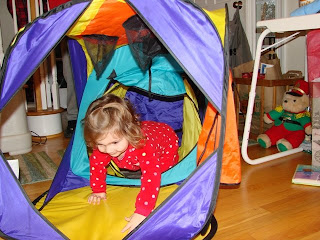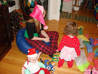 We'd been practicing for more than a month, and we are proud to say that Mae made it down the stairs Christmas morning without a problem! She was more than a little surprised to see the awesome tunnel system Santa left her and Ben at the bottom of the stairs, and then the block fort surrounding the tree! Everyone got such wonderful presents, from Santa, family and friends -- too many for us to list here. But we did snap a few pictures, and have video for anyone else interested!
