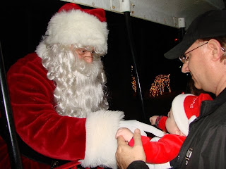 Choo! Choo! Tonight we spent the evening with our friend Sherri and Santa in Durham, taking a ride on the Santa Train! The Santa Train came highly recommended by TriangleMommies, a group Kirsten has recenly become involved, and did not disappoint the Collins family!
