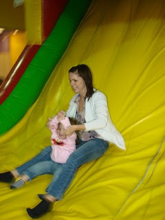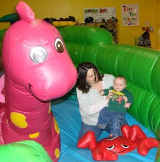 Afterwards, we decided to keep on celebrating next door at Monkey Joe's (not to be confused with our "Monkey Will.") For those that have not been, Monkey Joe's is this awesome indoor center with all these cool inflatible funland things for kids to just crawl all over and through and around.