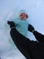 Mae's daddy "helped" her make a snow angel, thus inducing tears. She did, however, like sitting in the snow to watch her cousins play and she loved riding on the snow mobile with Uncle Roger.